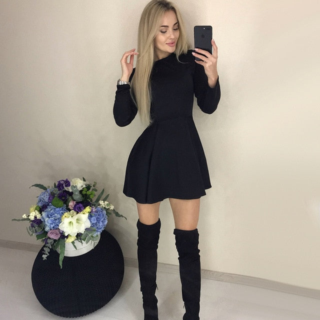 Brand Name: DabourfeelMaterial: CottonMaterial: PolyesterSilhouette: A-LineAge: Ages 18-35 Years OldModel Number: jg4-8779Season: WinterNeckline: O-NeckSleeve Length(cm): FullSleeve Style: RegularGender: WOMENDecoration: NoneStyle: CasualWaistline: NaturalPattern Type: SolidDresses Length: Above Knee, Mini