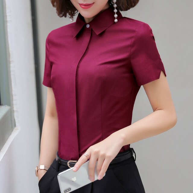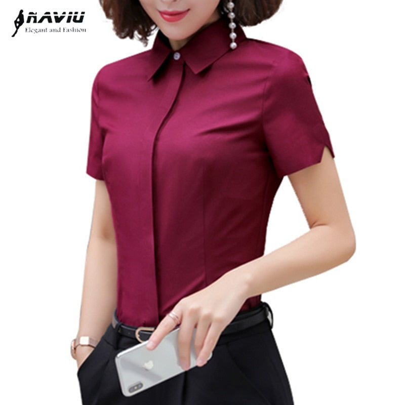 Brand Name: NAVIU Elegant and FashionMaterial: PolyesterMaterial: CottonOrigin: CN(Origin)Season: SummerClothing Length: RegularAge: Ages 18-35 Years OldCollar: Turn-down CollarDecoration: ButtonSleeve Length(cm): ShortSleeve Style: RegularStyle: FormalFabric Type: WovenPattern Type: SolidModel Number: NAViu4421519size: S M L XL XXL XXXL 4XLColor: White,Black,Light blue,Light purple,Wine red