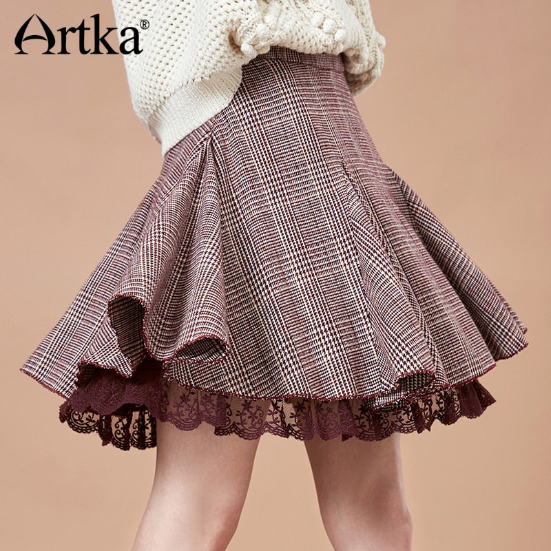 Gender: WOMENSilhouette: A-LineWaistline: empireDresses Length: Above Knee, MiniMaterial: LanonMaterial: ViscoseMaterial: AcrylicBrand Name: ArtkaPattern Type: PlaidStyle: vintageDecoration: LaceModel Number: QA15081D