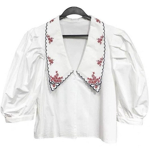 Brand Name: KOROBOVMaterial: PolyesterMaterial: MicrofiberMaterial: AcetateClothing Length: RegularAge: Ages 18-35 Years OldCollar: Peter pan CollarDecoration: EmbroiderySleeve Length(cm): ShortSleeve Style: Puff SleeveStyle: CasualFabric Type: BroadclothPattern Type: FloralModel Number: 2b511